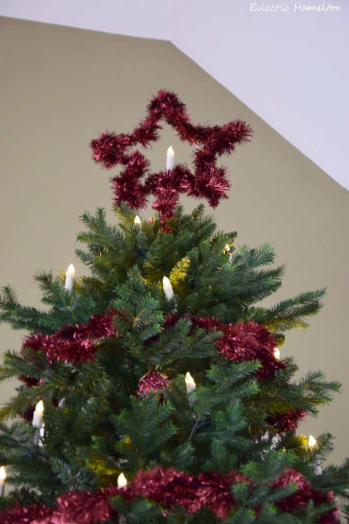 Leider passte die kunterbunte Spitze vom letzten Jahr überhaupt nicht dazu und so bastelte Mr.Eclectic kurzerhand aus dickem Kupferdraht und einer Lamettagirlande den passenden Weihnachtsstern! Ist er nicht wunderschön geworden?