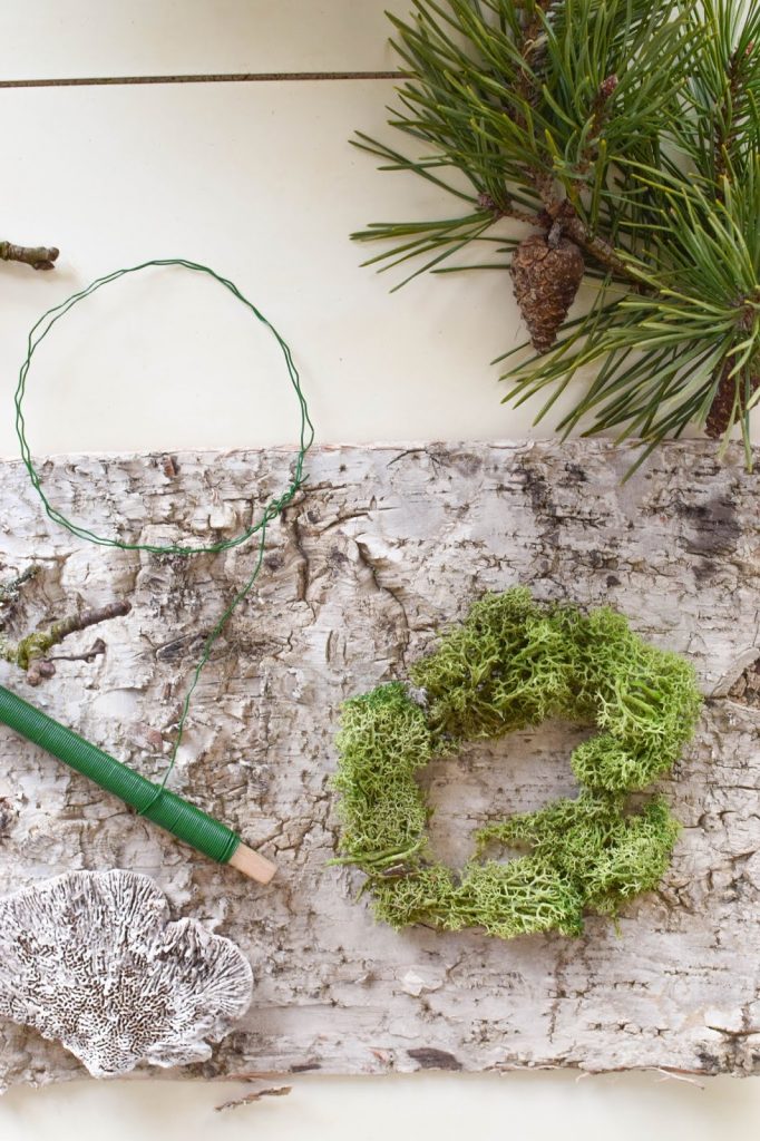 wickelt damit das Moos am Ring fest. Die Zapfen oder befestigt ihr