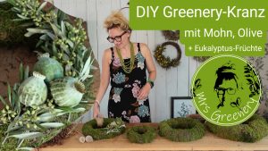 DIY Kranz aus Moos mit Mohn, Olivenzweigen und Eukalyptus-Früchten