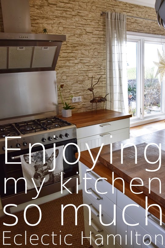 Hallo ines. Eine schöne küche hast du und der ofen schaut toll aus. Deine wand hat es mir aber am meisten angrtan. Ich liebe solche steinwände.sehr schön.
