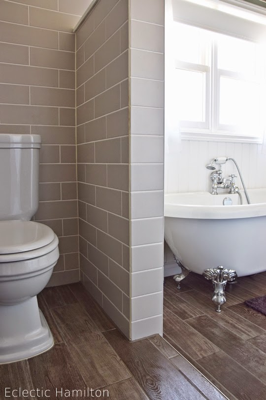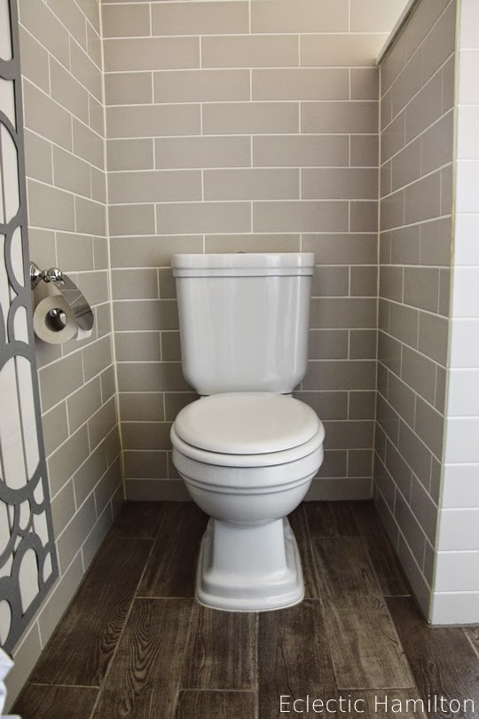 Ehrlich gesagt: ich wollte unbedingt einen Holzboden im Bad und Mr. Eclectic wollte Fliesen. Geeinigt haben wir uns dann auf diesen Kompromiss und sind beide sehr zufrieden damit!