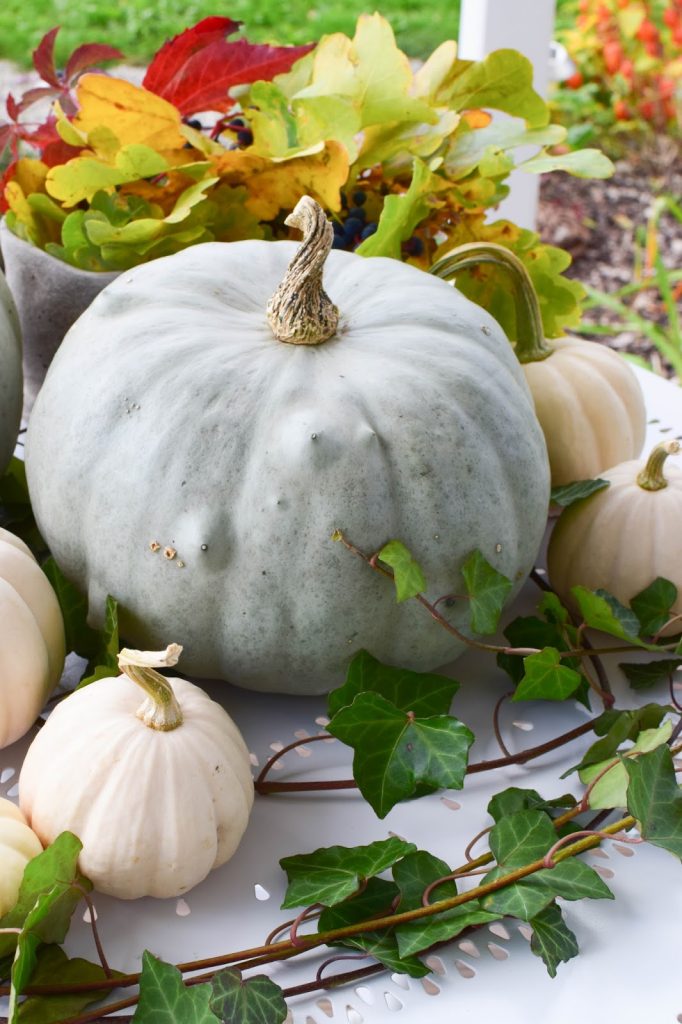 Deine Deko ist wie immer zauberhaft ! Gerade auch die Kombination der weißen Kürbisse mit den Efeuranken und den weißen Eisenmöbeln gefällt mir sehr. Sowas könnte ich mir hier auch vorstellen.