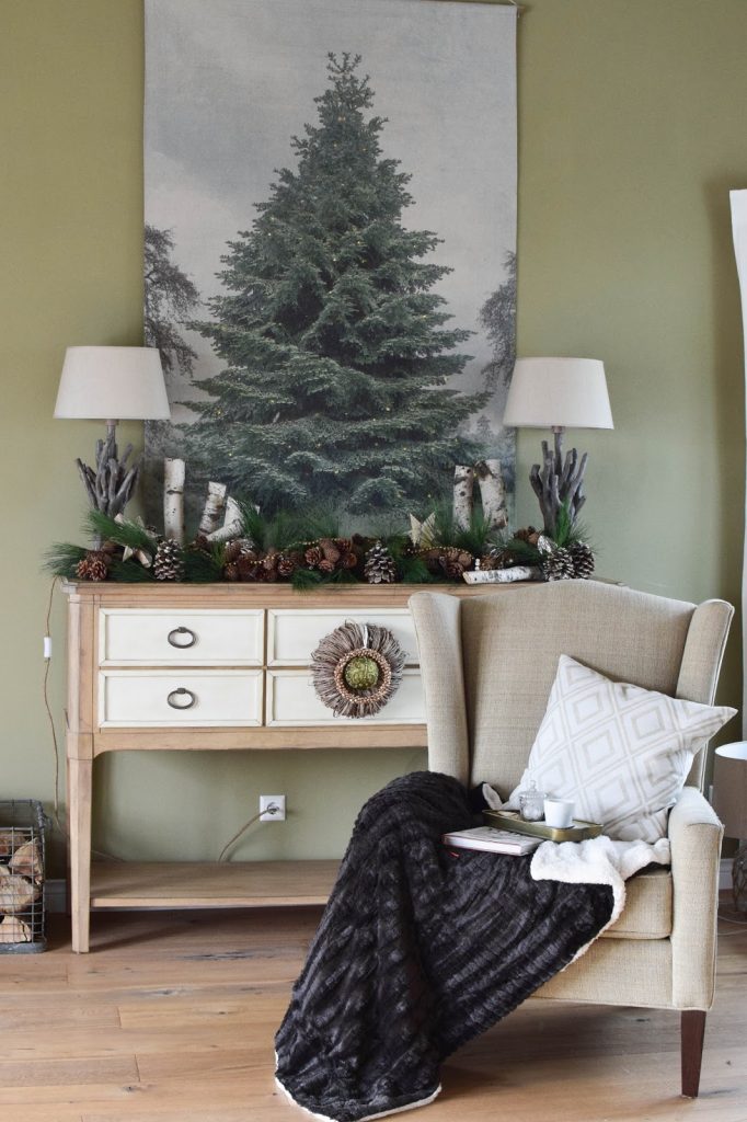 Das Sidboard habe ich ganz natürlich dekoriert: mit vielen Zapfen, einer künstlichen Kieferngirlande und ein paar Birkenästen. Ich liebe natürliche Deko sehr und deshalb kommt sie auch an Weihnachten zum Einsatz.
