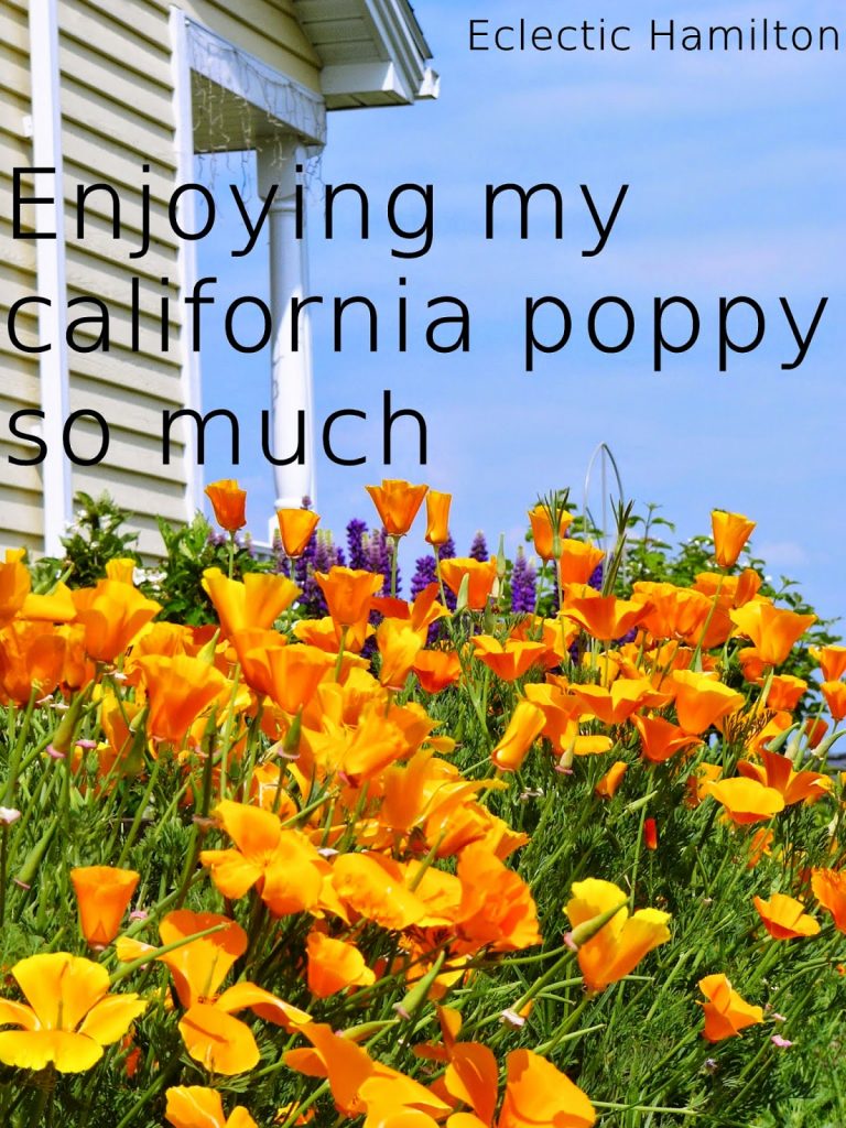 Der Goldmohn hat sich ausgesamt und wächst nun auf der anderen Seite des Weges, direkt an der Holzterrasse entlang.