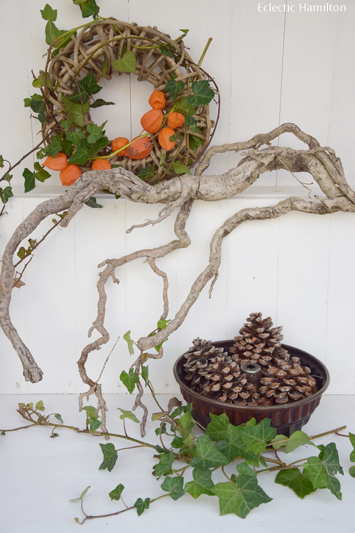 Das ist doch mal Herbstdeko ganz nach meinem Geschmack – super schön!! Die großen Zapfen, der Kranz – hach, schön!!