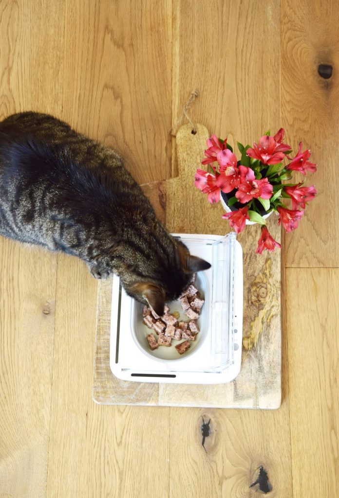 Eine luftdichte Futterschale, die sich automatisch öffnet, wenn sich die Katze dem Napf nähert!