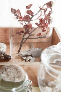 Urlaubsfundstücke: Muscheln, runde Steine, Steine mit Loch, Steine in besonderen Formen, Schneckenhäuser, Blätter, Äste, Sand, [...]