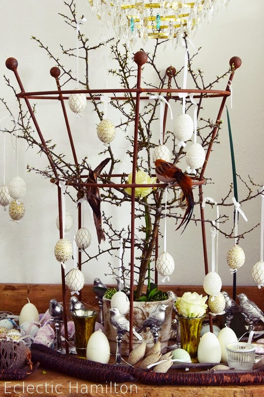 die Mitte stellen und dann mit hübschen Ostereiern behängen.