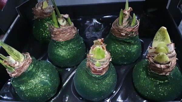 Die Amaryllis ist mit Wachs überzogen.