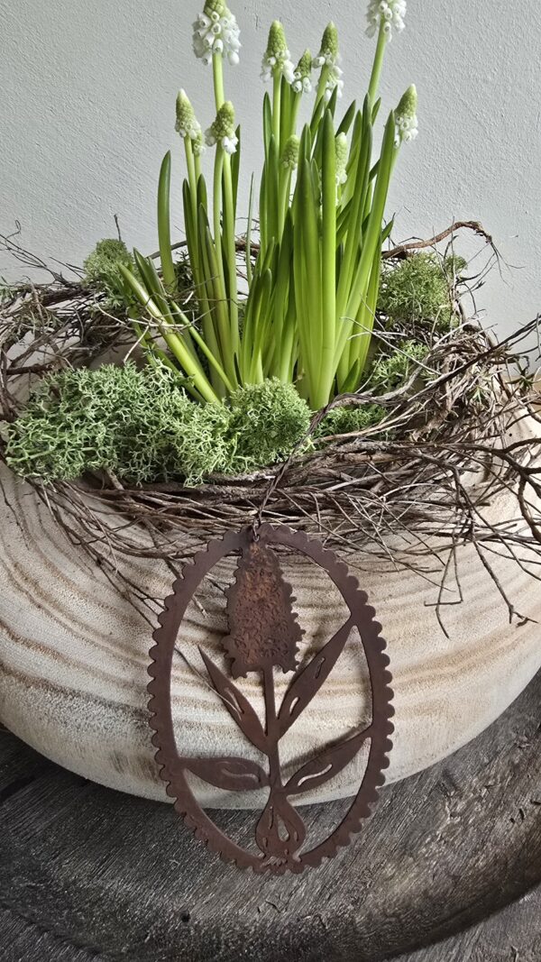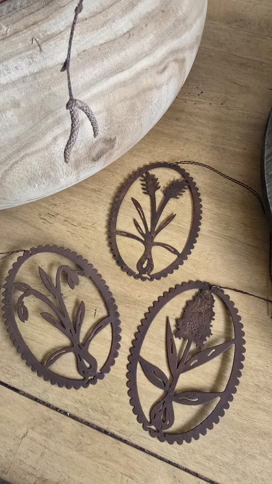 Filigraner Anhänger aus Metall mit Rostpatina.