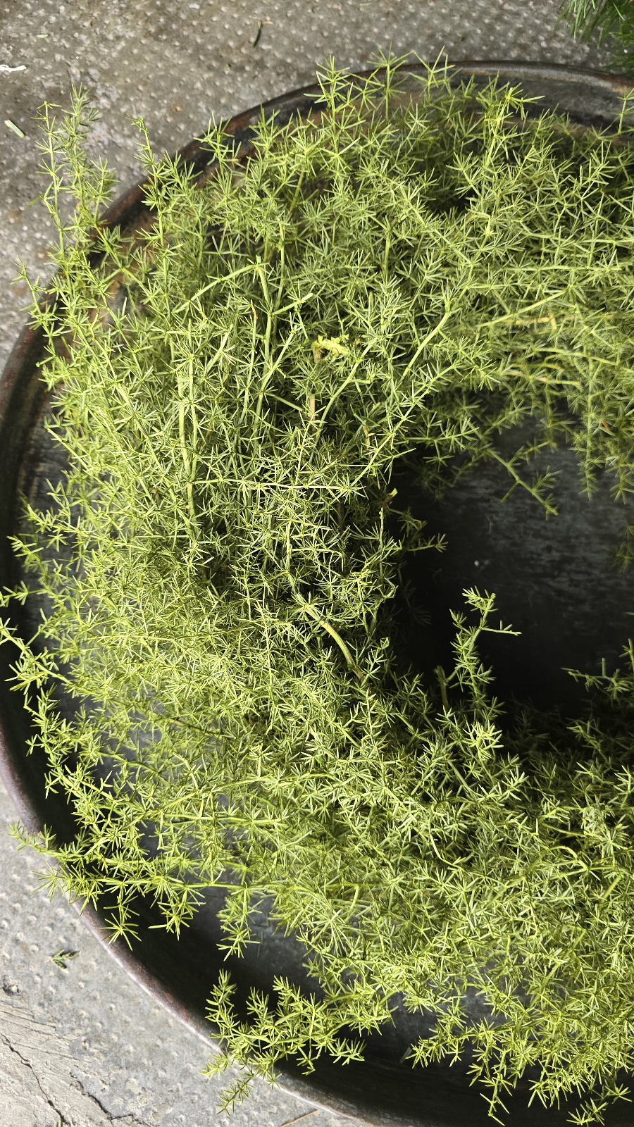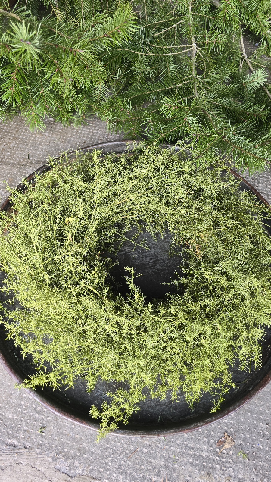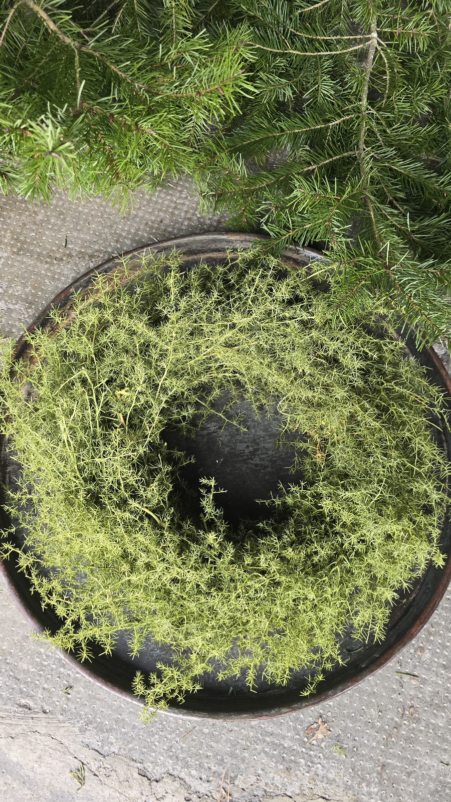 Der Kranz aus Asparagus ist gewachst und somit für die Ewigkeit haltbar gemacht.
