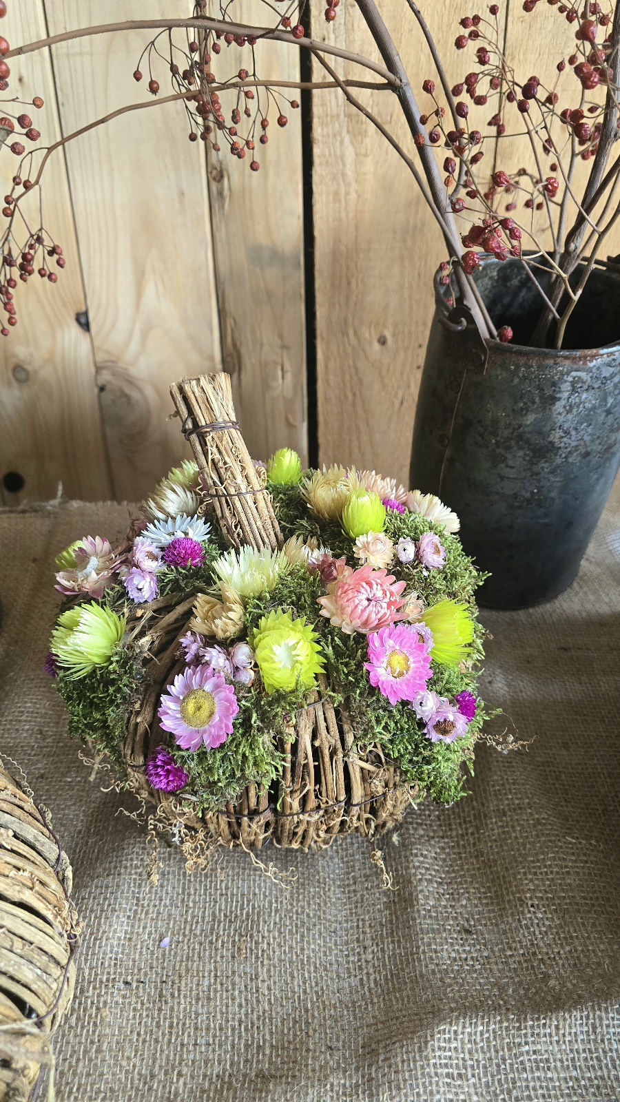 Aus filigranen Rebenzweigen gefertigt, verzaubert er dein Zuhause und deine herbstliche Deko. Die farbenfrohen Strohblumen bringen Freude!