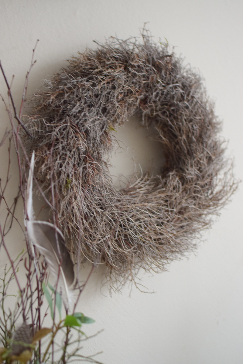 Struppsig und wild gebunden und zu jeder Jahreszeit einsetzbar: ein klassischer Gestrüppsekranz!!!