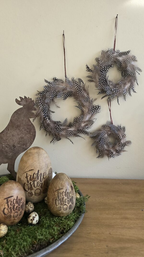 Vielfältig einsetzbar: Egal, ob alleine oder in Kombination, ob im Rahmen einer Tischdeko oder auf dem Fensterbrett – der kleine Federkranz sorgt garantiert für einen echten Hingucker.