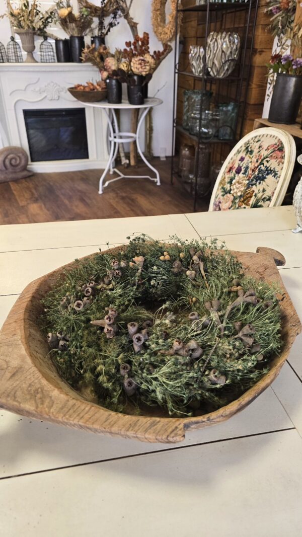 Ein toller Trockenblumen-Kranz mit Eukalyptus-Früchten.