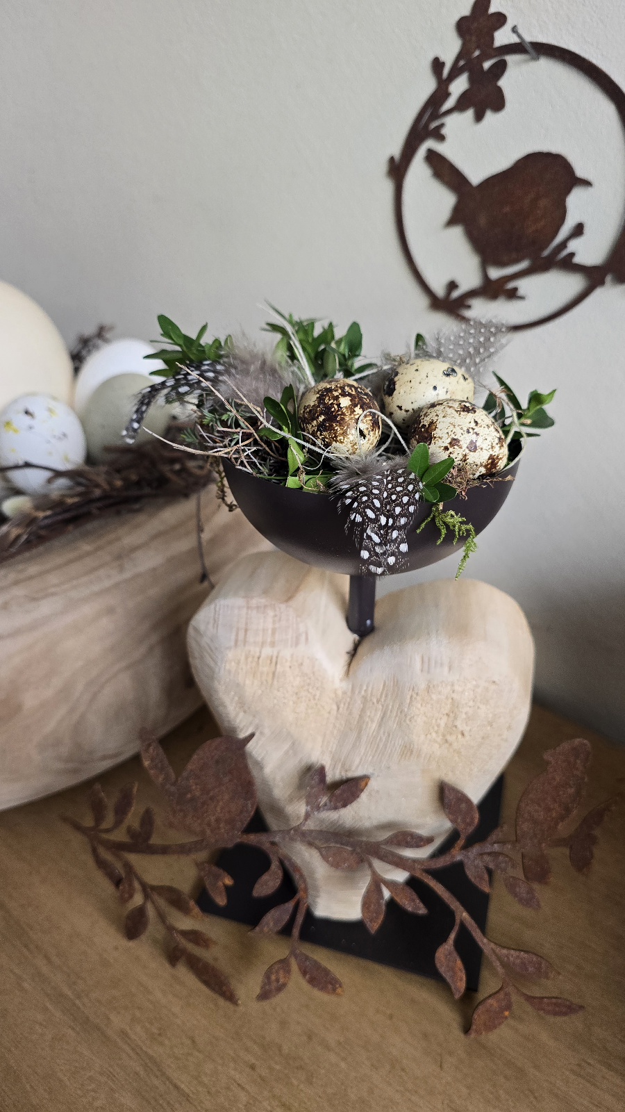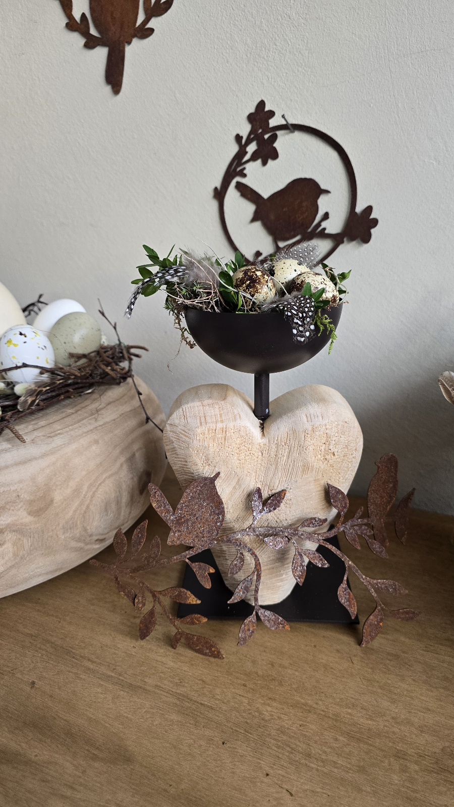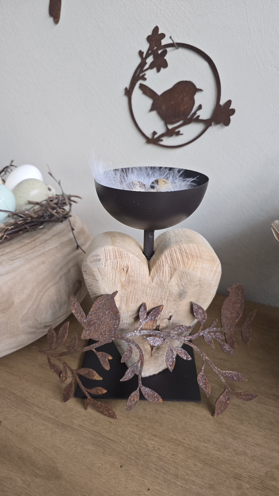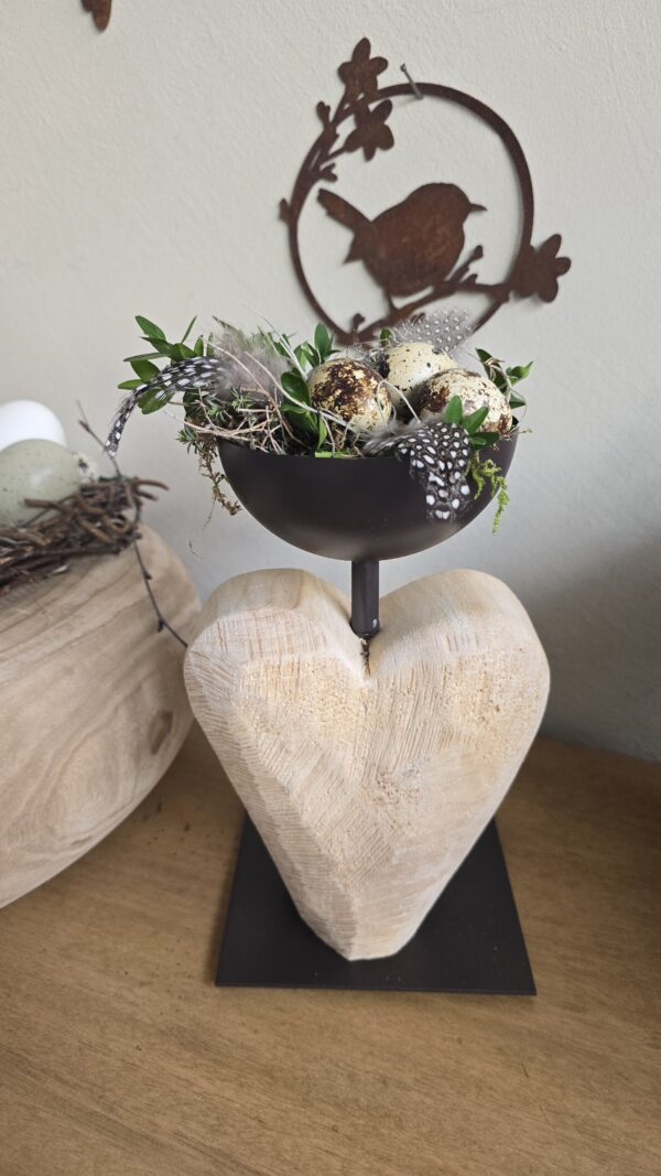 Toller hochwertiger Metall-Ständer mit Dekoschale und Herz aus Pappelholz.