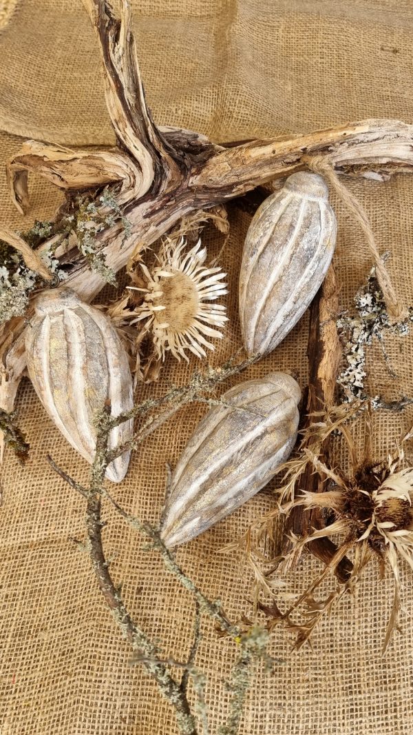 Oh wie schön! Der tolle gedrehte Holz-Zapfen glitzert ganz dezent golden. Er verschönert im Handumdrehen deine Herbst- und Winterdeko.
