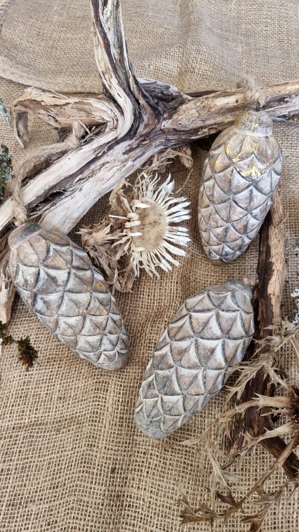 Oh wie schön! Der tolle Holz-Zapfen glitzert ganz dezent golden. Er verschönert im Handumdrehen deine Herbst- und Winterdeko.