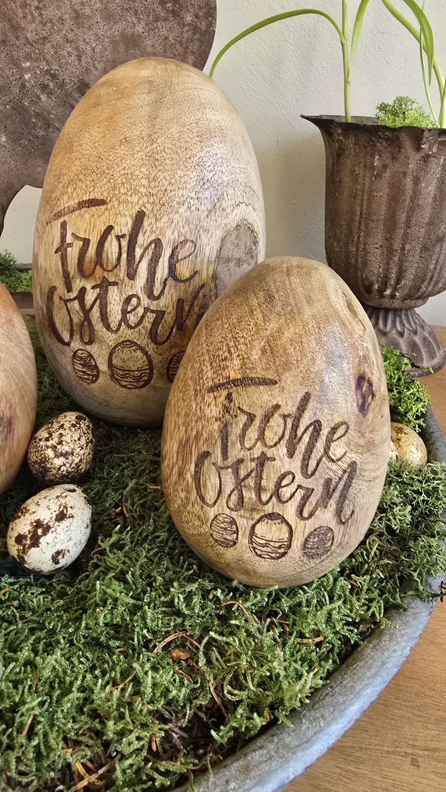 WOW! Was für eine Schönheit. Das Ei hat den Schriftzug: „Frohe Ostern“.