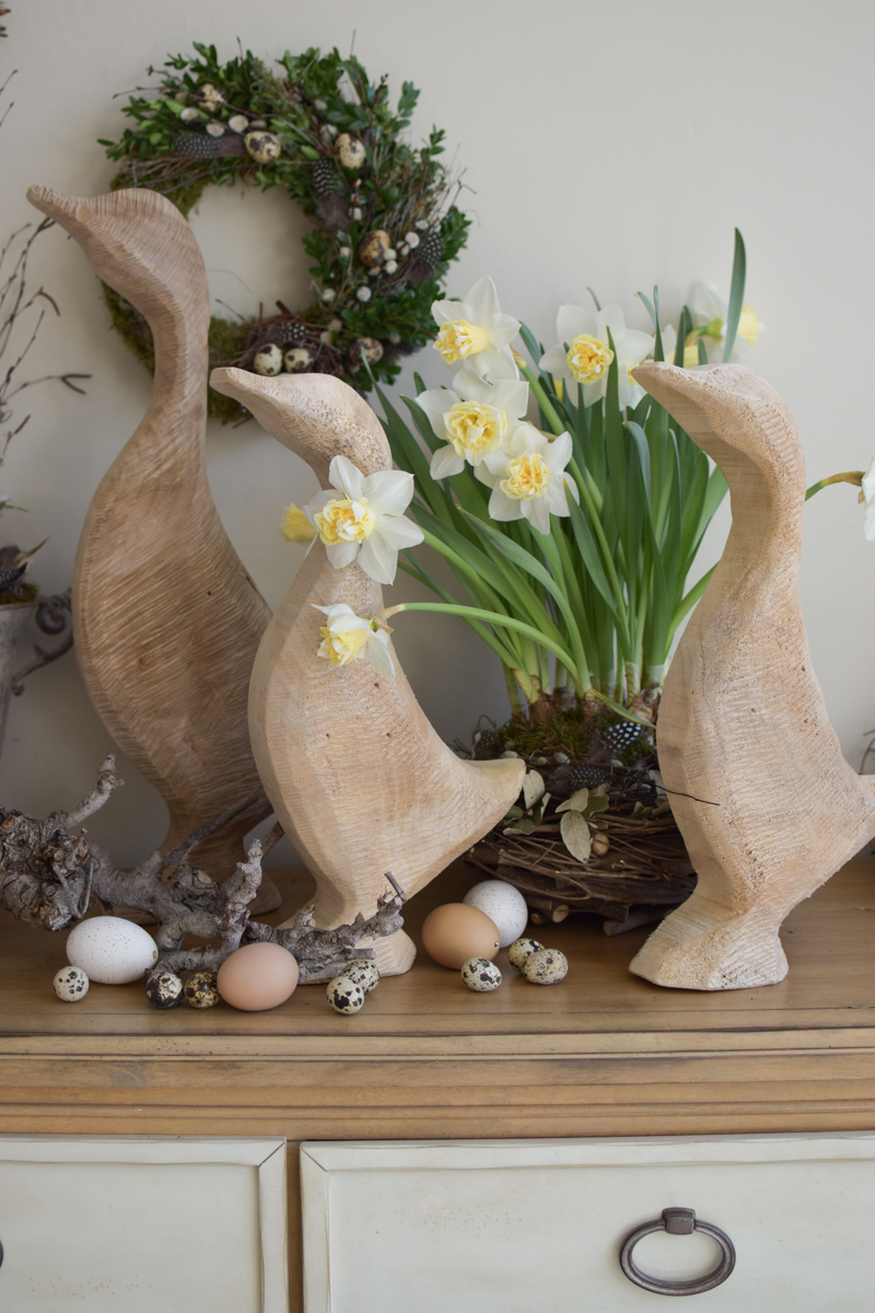 Die Gans wurde aus frisch geschlagenem unbehandelten Holz gefertigt. Durch die Verwendung von frischem Holz entstehen im Laufe der Zeit Trocknungsrisse, die dieser Gans sein charakteristisches und rustikales Erscheinungsbild verleihen. Deshalb ist jedes Stück einzigartig.