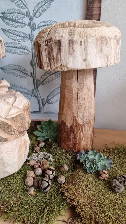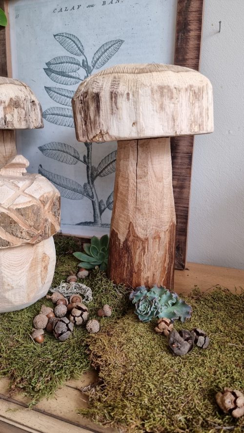 Der Pilz ist aus Vollholz / Eiche gefertigt.
