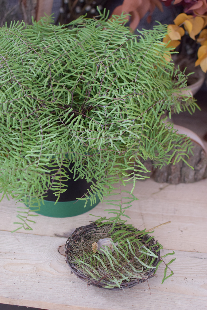 Der Korallenfarn macht sich wundervoll in der Vase in Komi mit frischen Blumen.