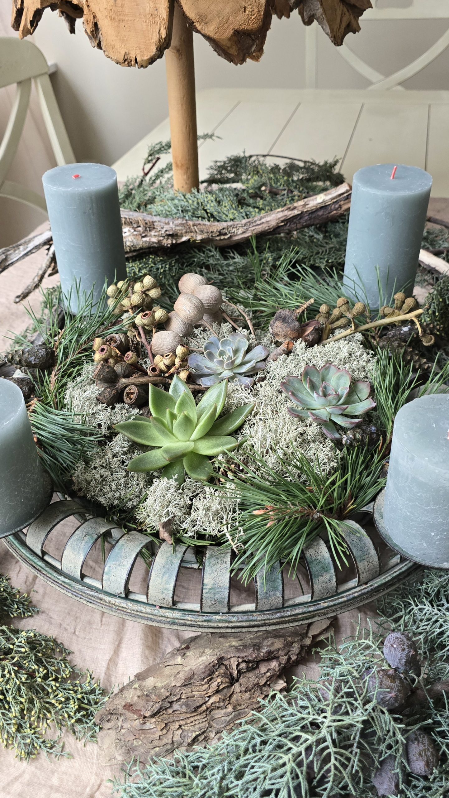 Der diesjährige Adventskranz 2024 ist kein klassischer Kranz sondern eine Interpretation davon.