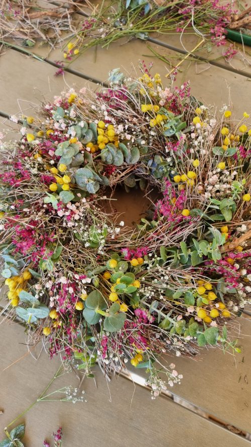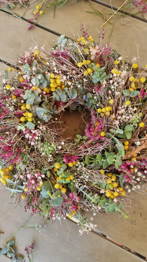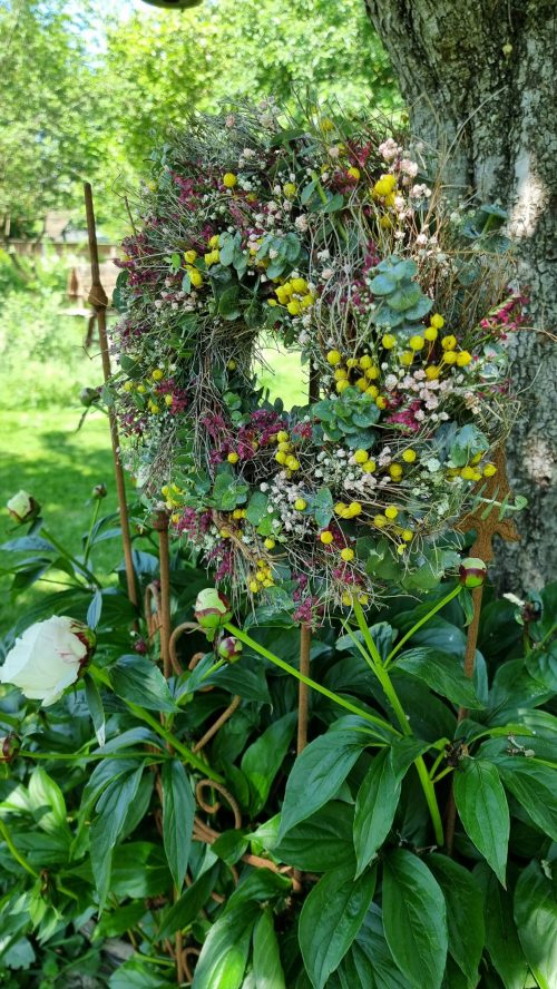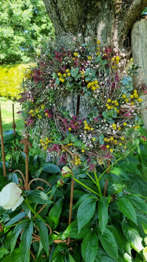 Ich habe diesen farbenfrohen Sommerkranz gebunden und ihr ward begeistert.