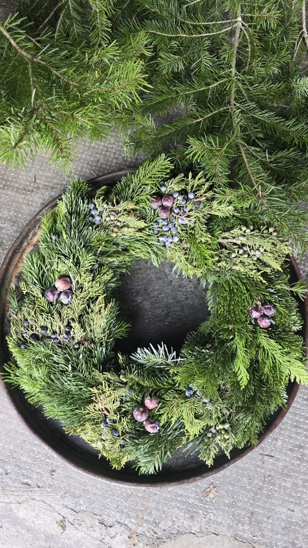Der winterlich-weihnachtliche Kranz aus verschiedenem Tannengrün bringt Natur in dein Zuhause.