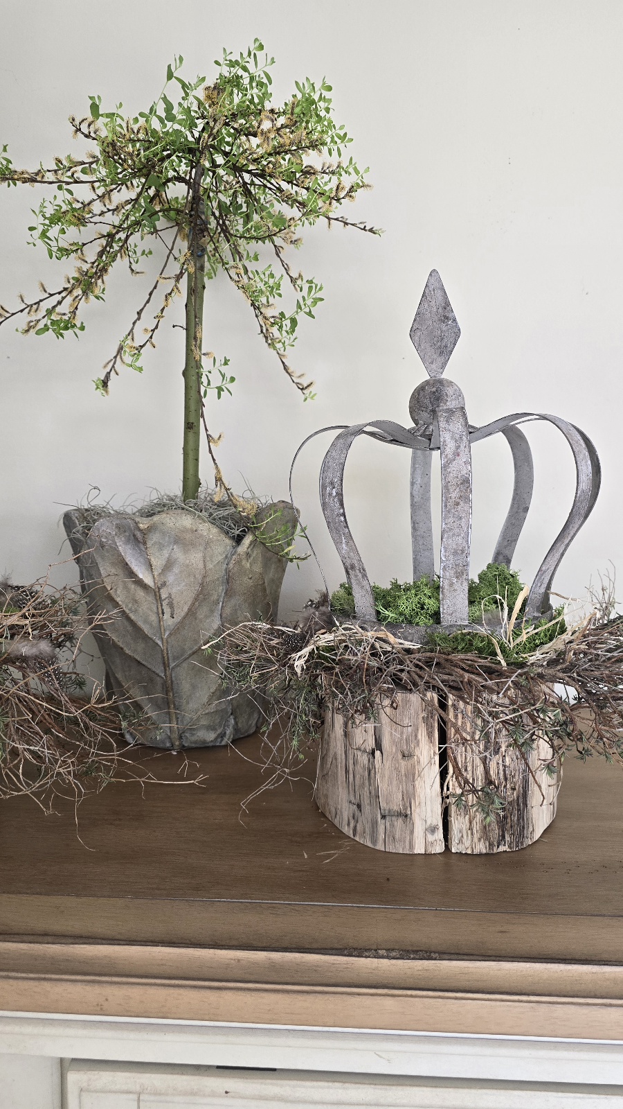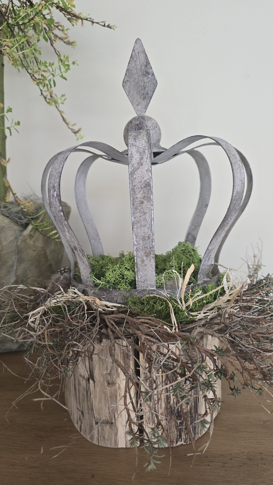 Die antik graue Metallkrone lässt sich zu jeder Jahreszeit toll dekorieren.