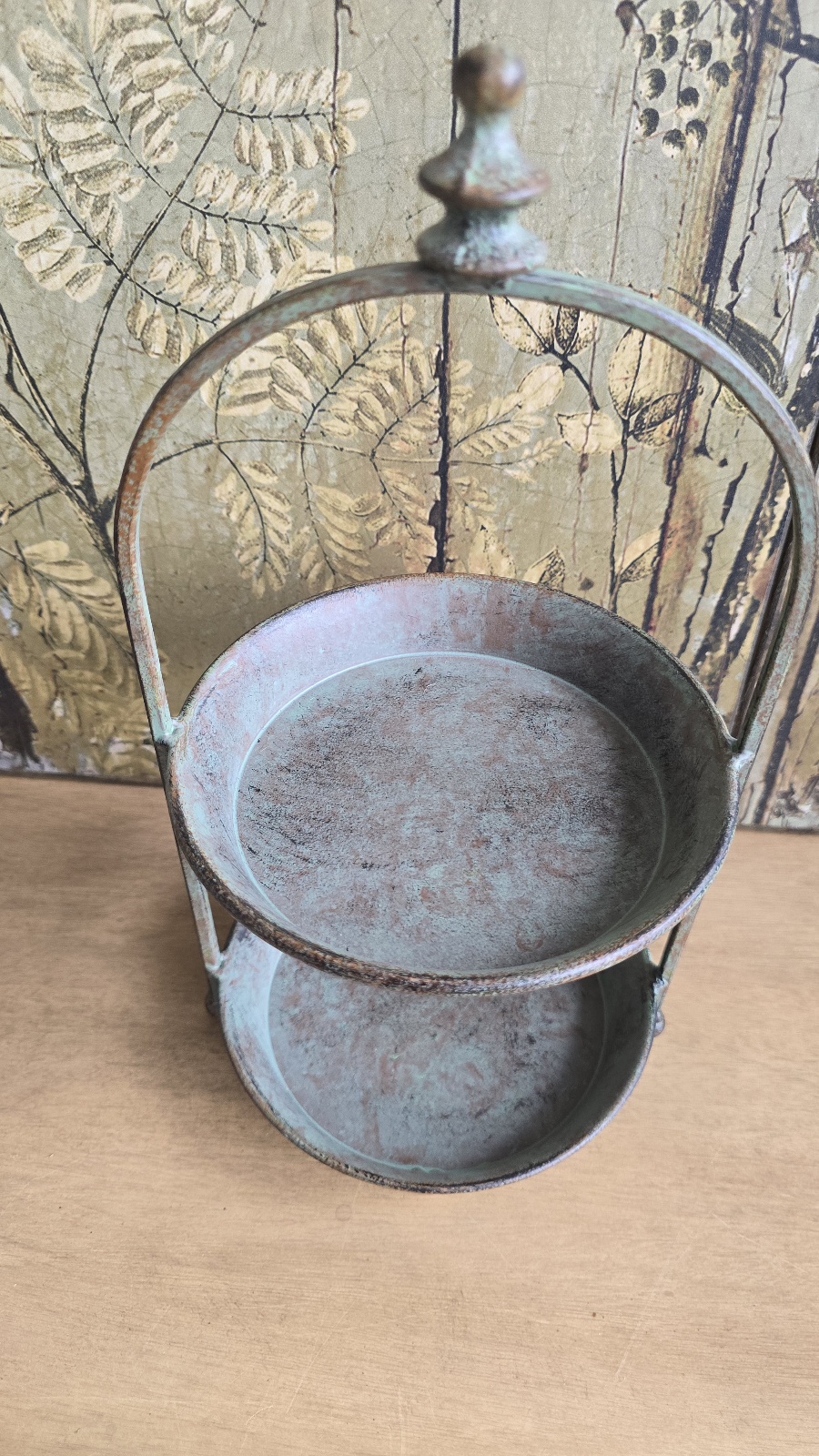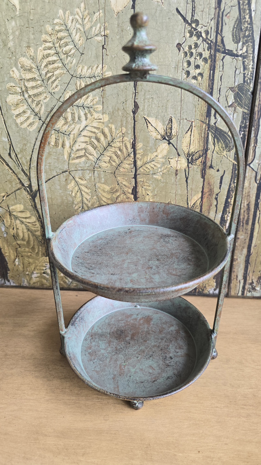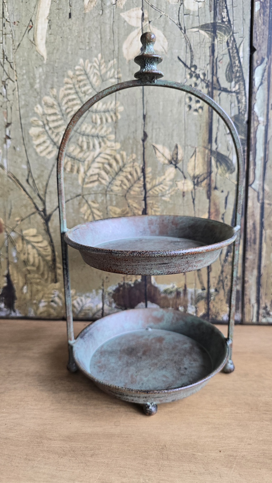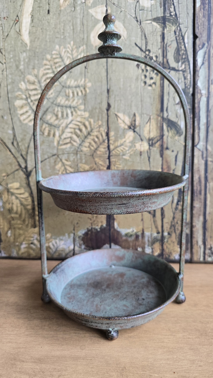 Die Etagere ist hochwertig aus Metall im Vintage-Look gefertigt.