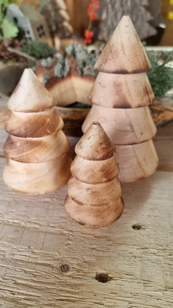 Die Tanne ist aus Holz gefertigt und bringt Nautr in deine Winterdeko. Du kannst sie ganz easy mit frischem Tannengrün und kleinen Beeren auf dem antiken Holztablett dekorieren.
