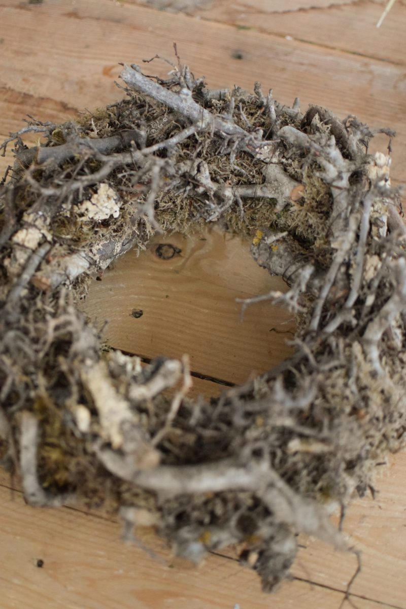 Ein ganz besonderer Kranz aus Moos und Bonsaiholz.