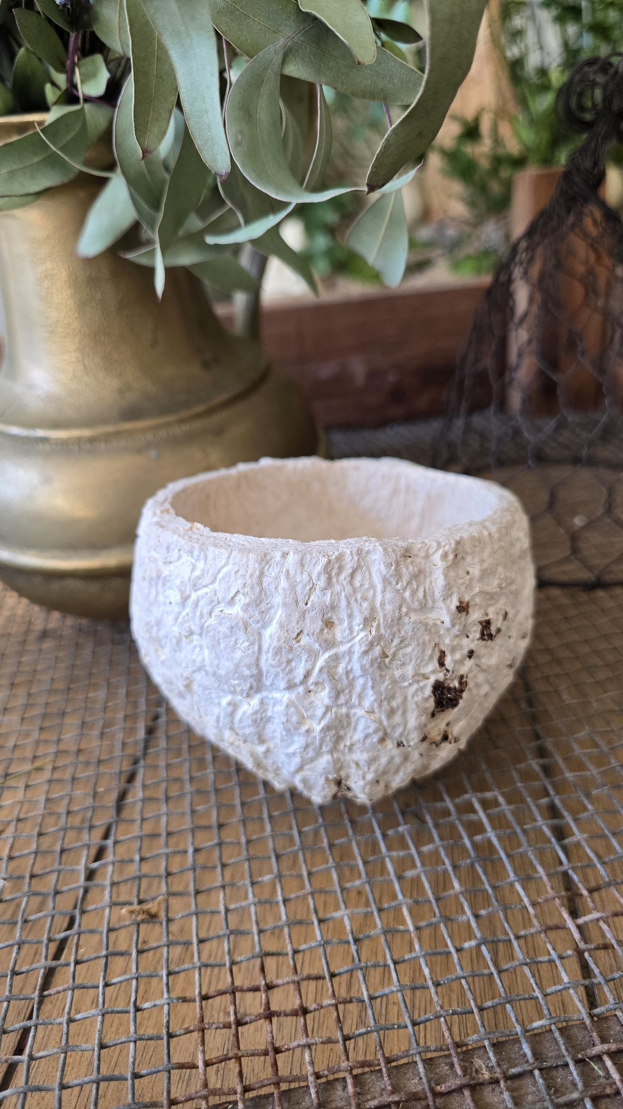 Natur pur! Das ist eine Paranuss-Schale, die weiß eingefärbt wurde.