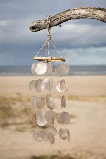 Das Muschel-Mobile macht super angenehme Geräusche im Wind und ist ein echter Hingucker.
