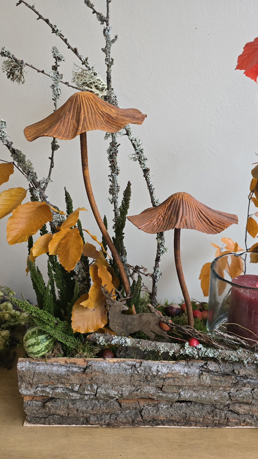 Der Pilz aus Metall lässt sich ganz einfach in deine Deko-Arrangements stecken.