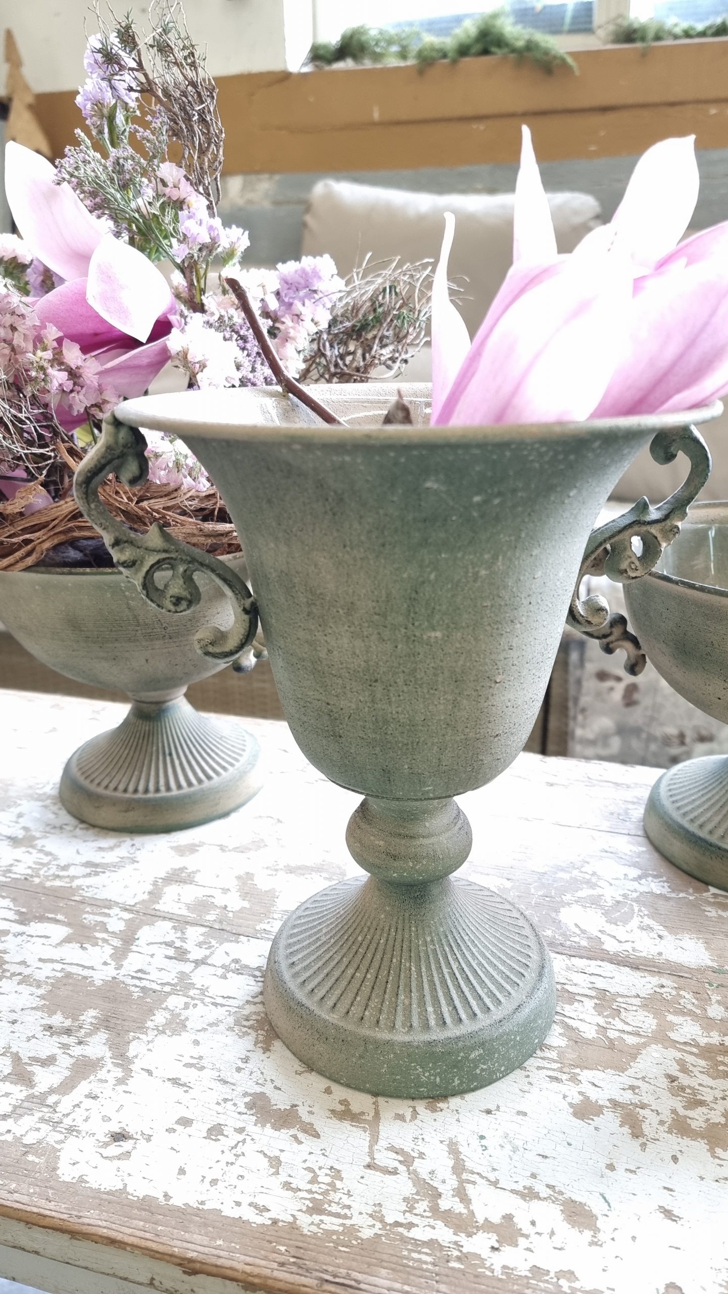 Ein toller Pokal mit Griffen. Perfekt für deine Naturdekorationen mit Bio-Steckschaum oder zum Bepflanzen.