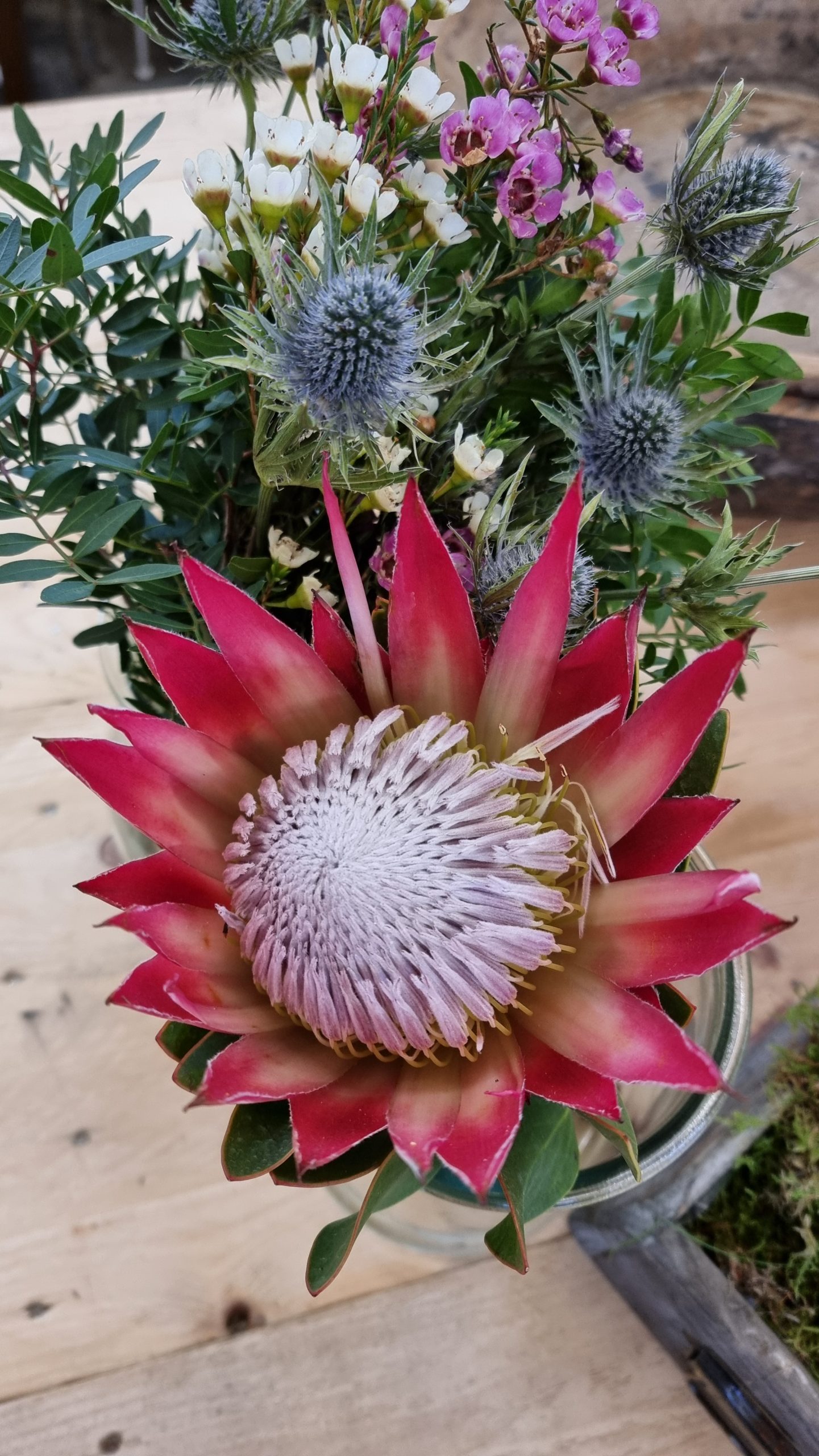 Mit der Protea holst du dir Farbe in dein Zuhause! Egal ob Solität oder im Strauß … die Proteas glänzen!
