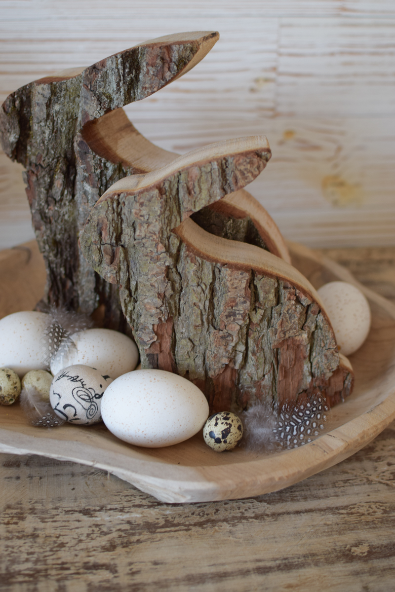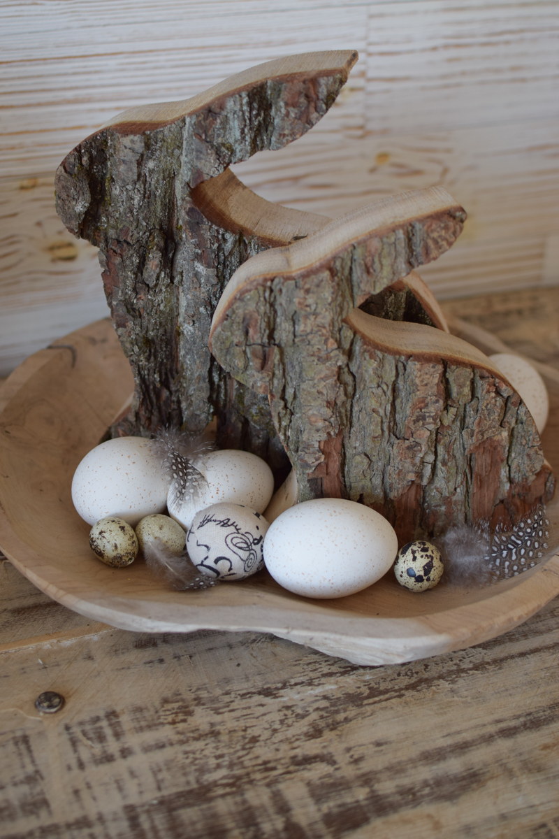 Was für ein Hase! Aus Vollholz und mit toller Rinde.