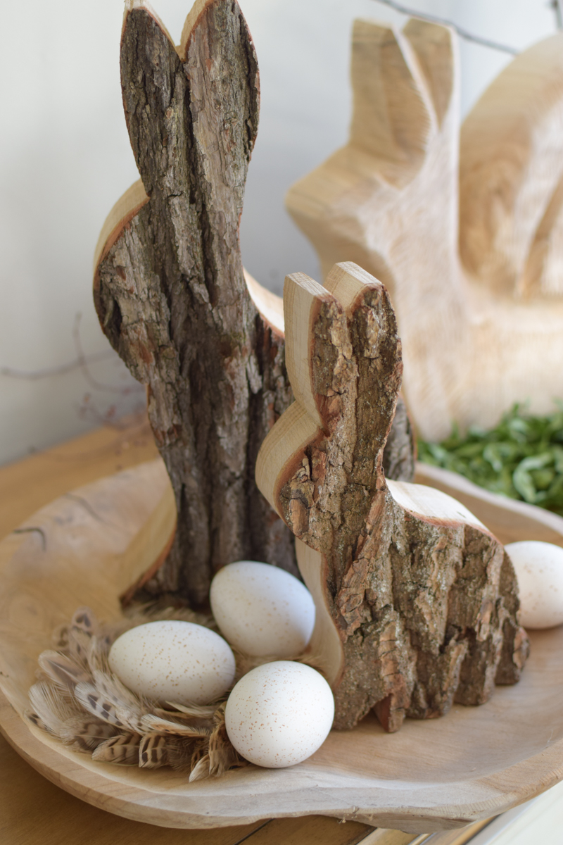 Was für ein Hase! Aus Vollholz und mit toller Rinde.