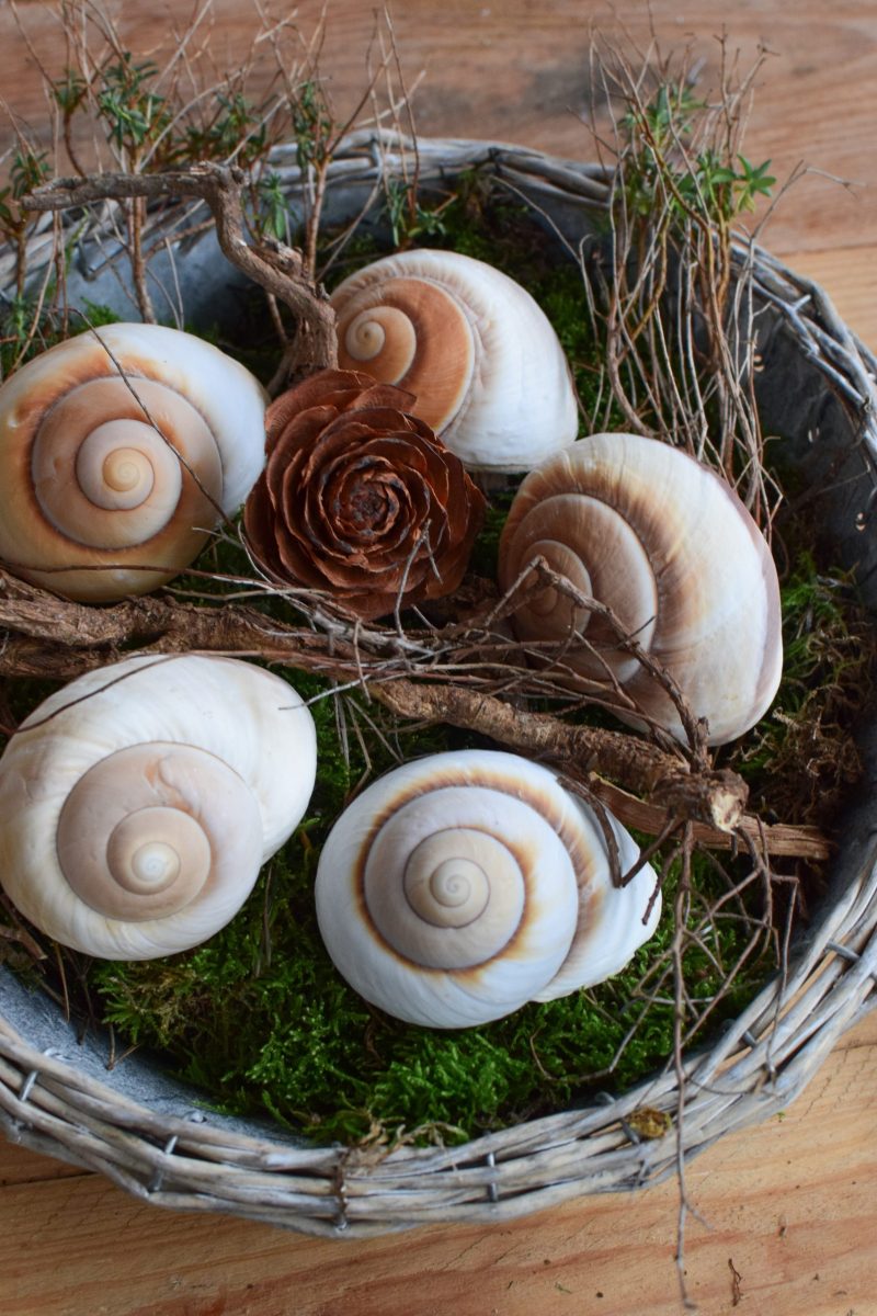 Egal ob im Kranz oder in deinem natürlichen Topf-Arrangement, die Schnecken geben deiner Deko das gewisse Etwas!