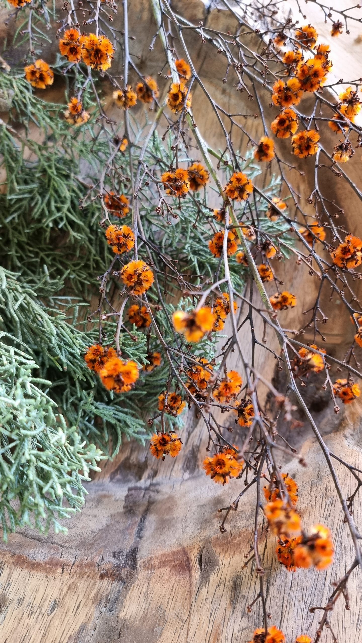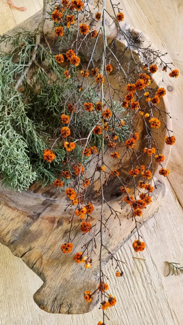 Die Stillingia ist orange eingefärbt und frisch, aber auch trocken eine Schönheit.