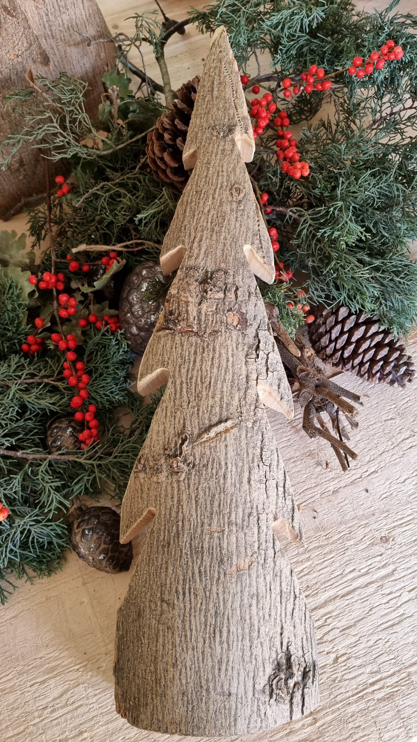 Was für eine elegante Tanne! Aus Vollholz und mit toller Rinde.