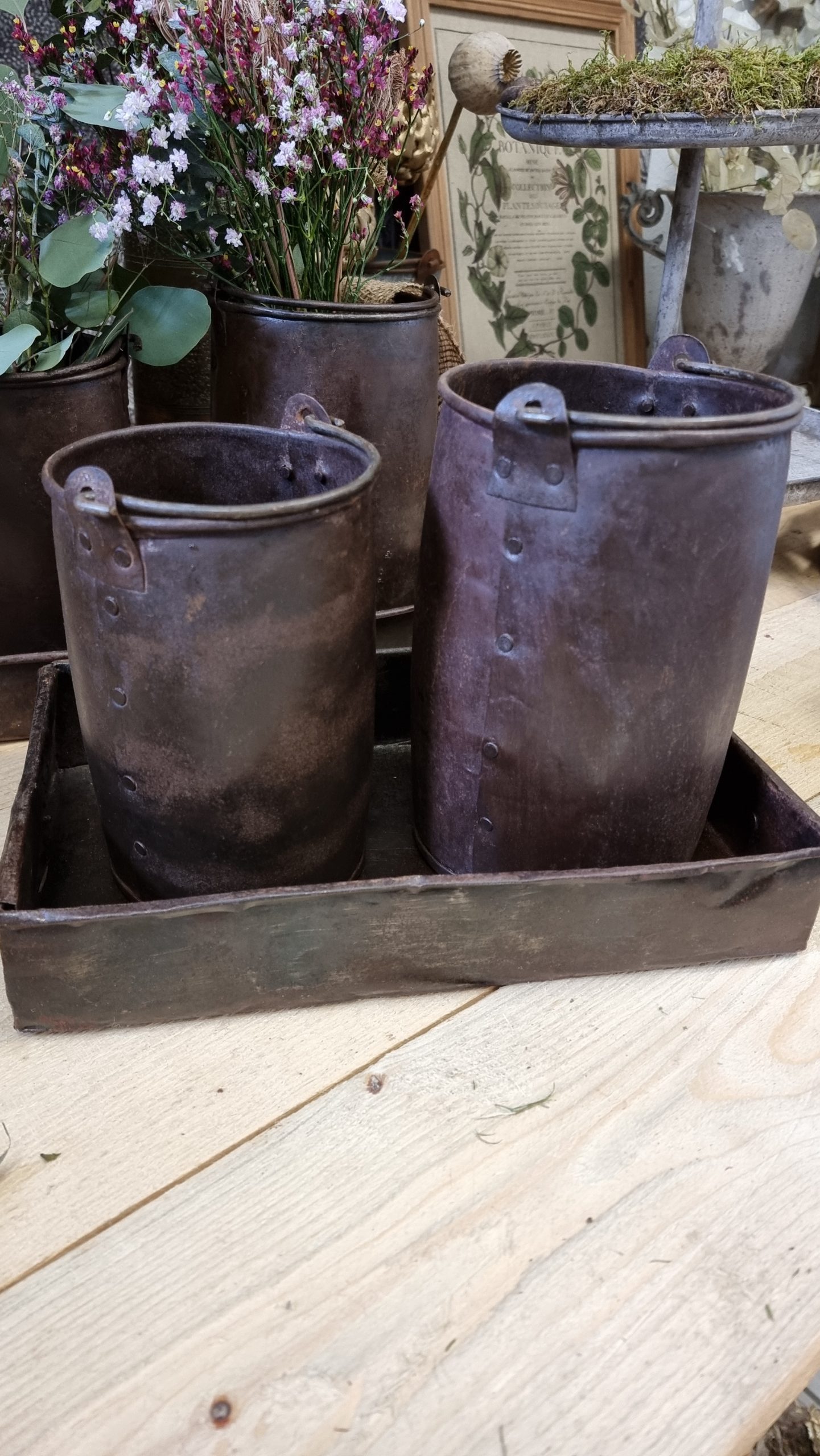 Toller antiker Übertopf aus altem Metall und mit wunderschönen Details: Nieten und kleinen Ringen!