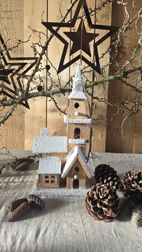 Ein Must-Have für diesen Winter: die tollen beschneiten Holzhäuser bringen Winterstimmung in dein Zuhause.