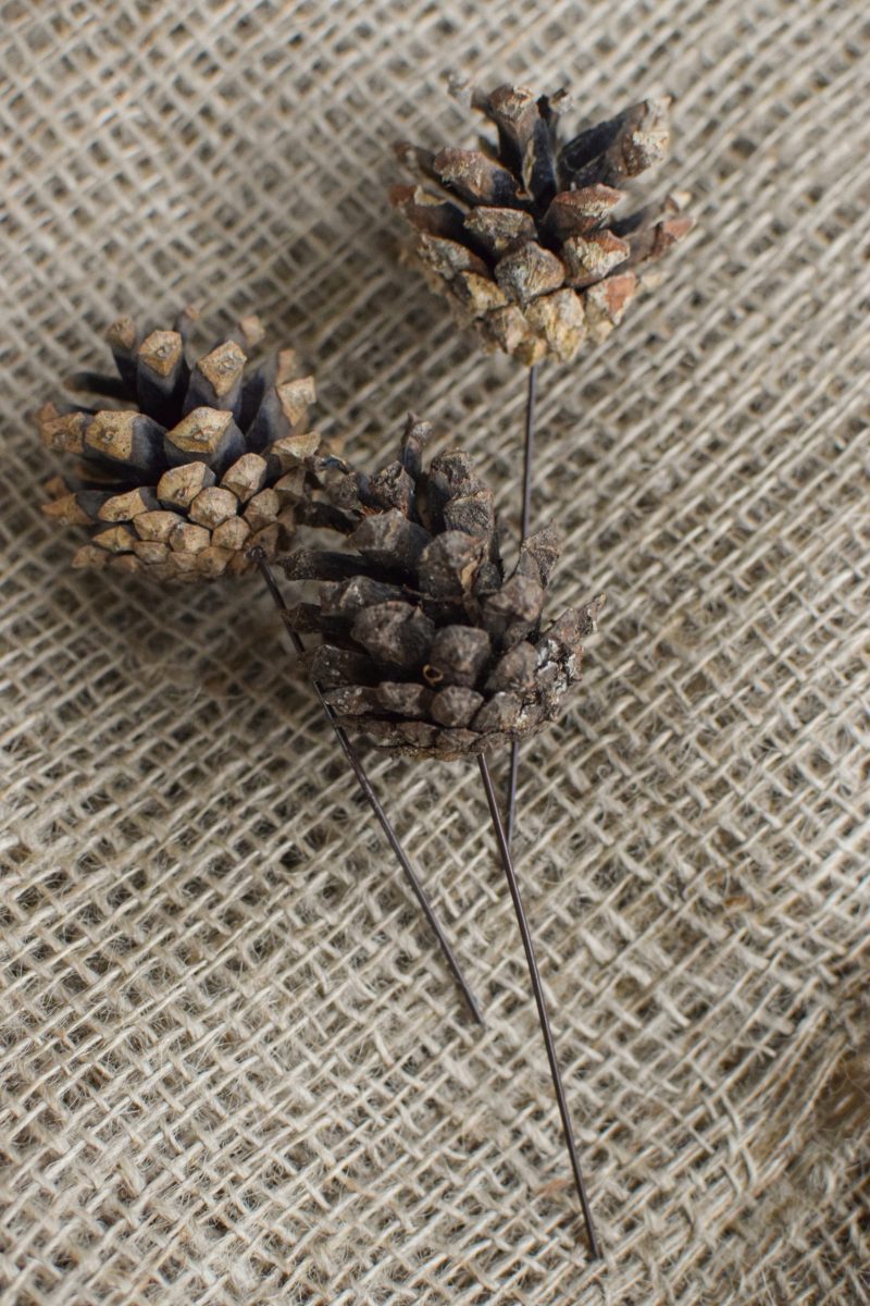 Der Zapfen ist auf einem Metallstecker angebracht und eignet sich somit hervorragend für deine Naturdeko-Ideen.