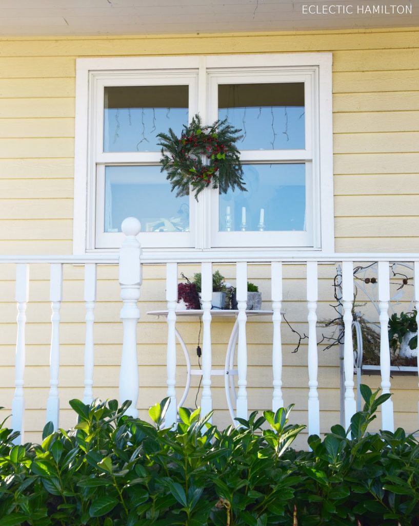 Am Wochenende habe ich die Kränze mit Mr.Eclectic aufgehängt. Mr.Eclectic war für die Kletteraktion aufs Verandadach zuständig! DANKE, Darling! Du machst wirklich alle Deko-Eskapaden mit. Zuerst 4 Meter die Leiter hoch um den Weihnachtsbaum zu schmücken und dann mal kurz auf´s Vordach. XOXOXO